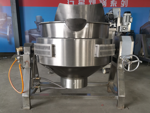 設(shè)備鍋體為一次沖壓成型的半球型不銹鋼鍋體,攪拌方式采用特殊的傾斜式傳動,使用的行星式攪拌器與鍋體充分接觸,實現(xiàn)傳動公轉(zhuǎn)與自傳的不整數(shù)傳動比,使鍋內(nèi)無攪拌死角。采用液壓升降,翻鍋運(yùn)料,免拆裝攪拌器,設(shè)備可按加熱方式分為:電加熱、燃?xì)饧訜?、蒸汽加熱、電磁加熱等?/p>